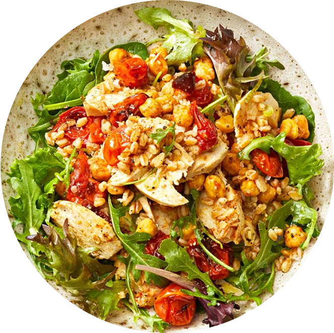 Pan-fry chickpeas in a bit of oil until golden (10–12 mins). Toss with spices, salt, pepper, and a touch of oil.