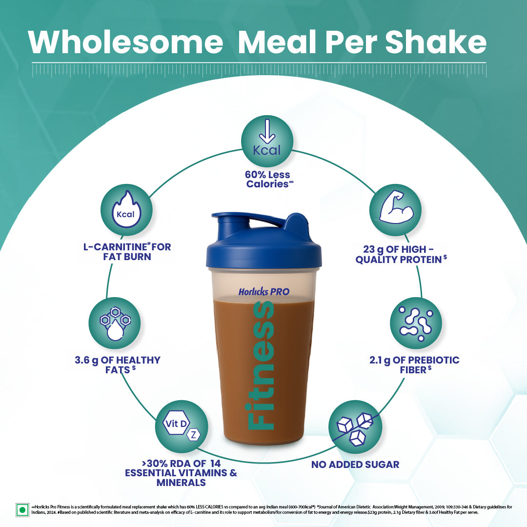Horlicks Pro Fitness Chocolate 400g BIB,Meal Replacement for Weight Loss