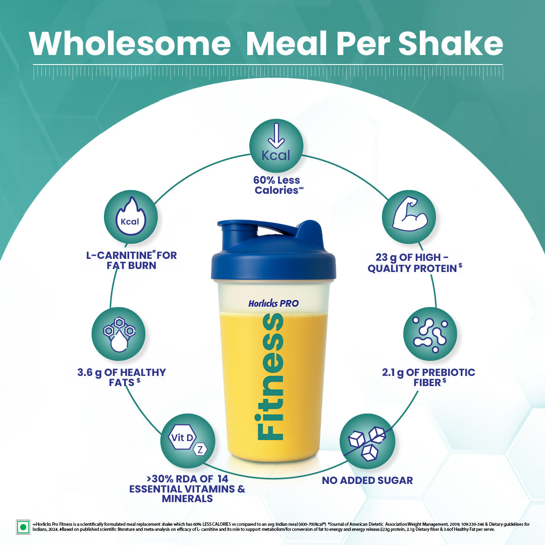 Stir quickly to mix well. Recommended to Replace upto 2 meals a day with Horlicks PRO Fitness.